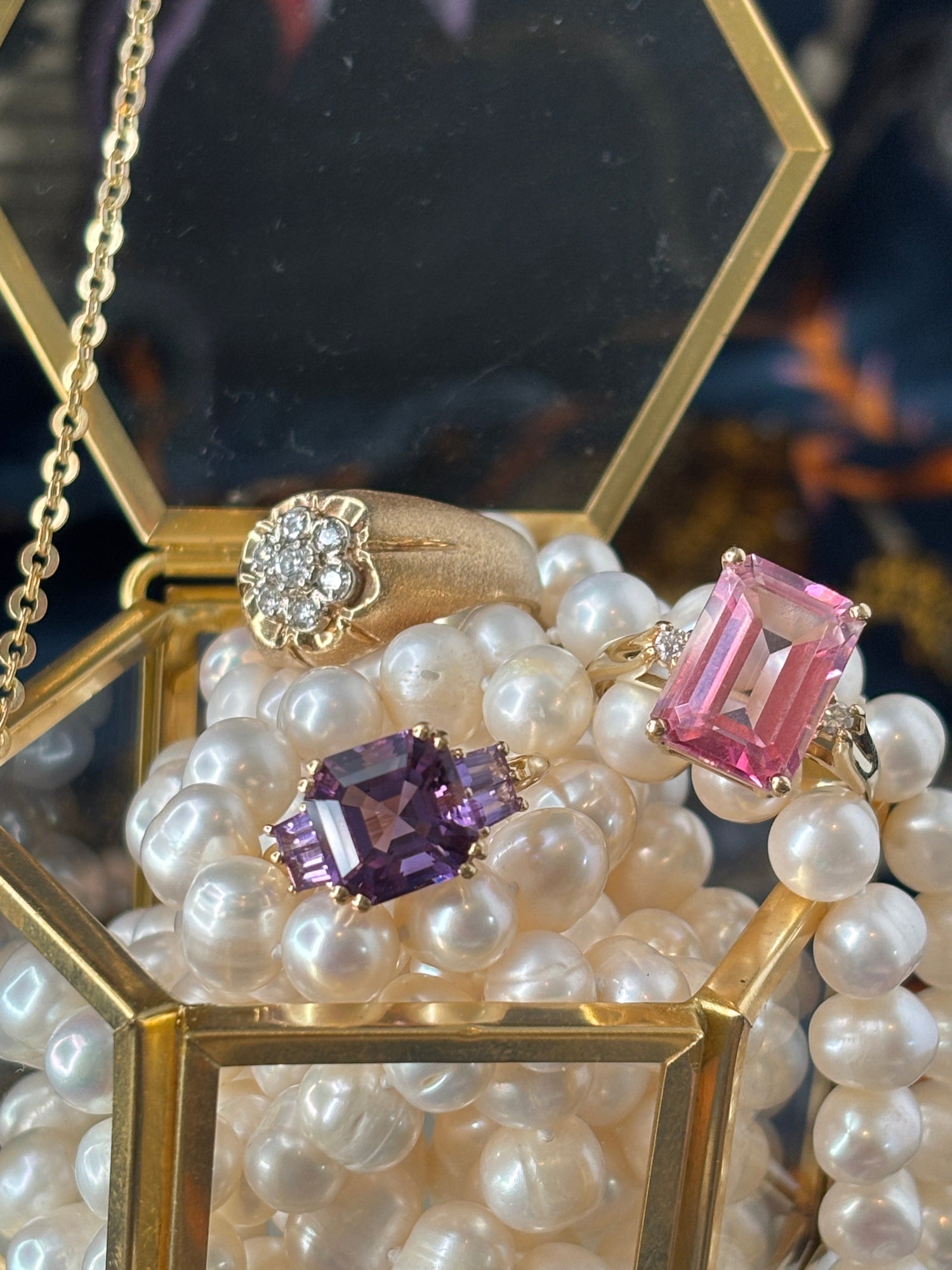 The Golden Huntress is led by lifelong jewelry lovers who decided to pursue our dream of bringing treasures big and small to enthusiasts and collectors at all levels. Our days are full of debating our favorite jewelry eras and searching far and wide for the next piece we love enough to bring to you.