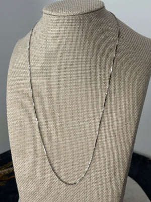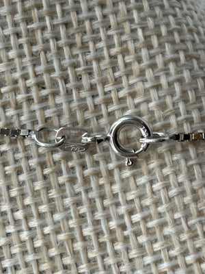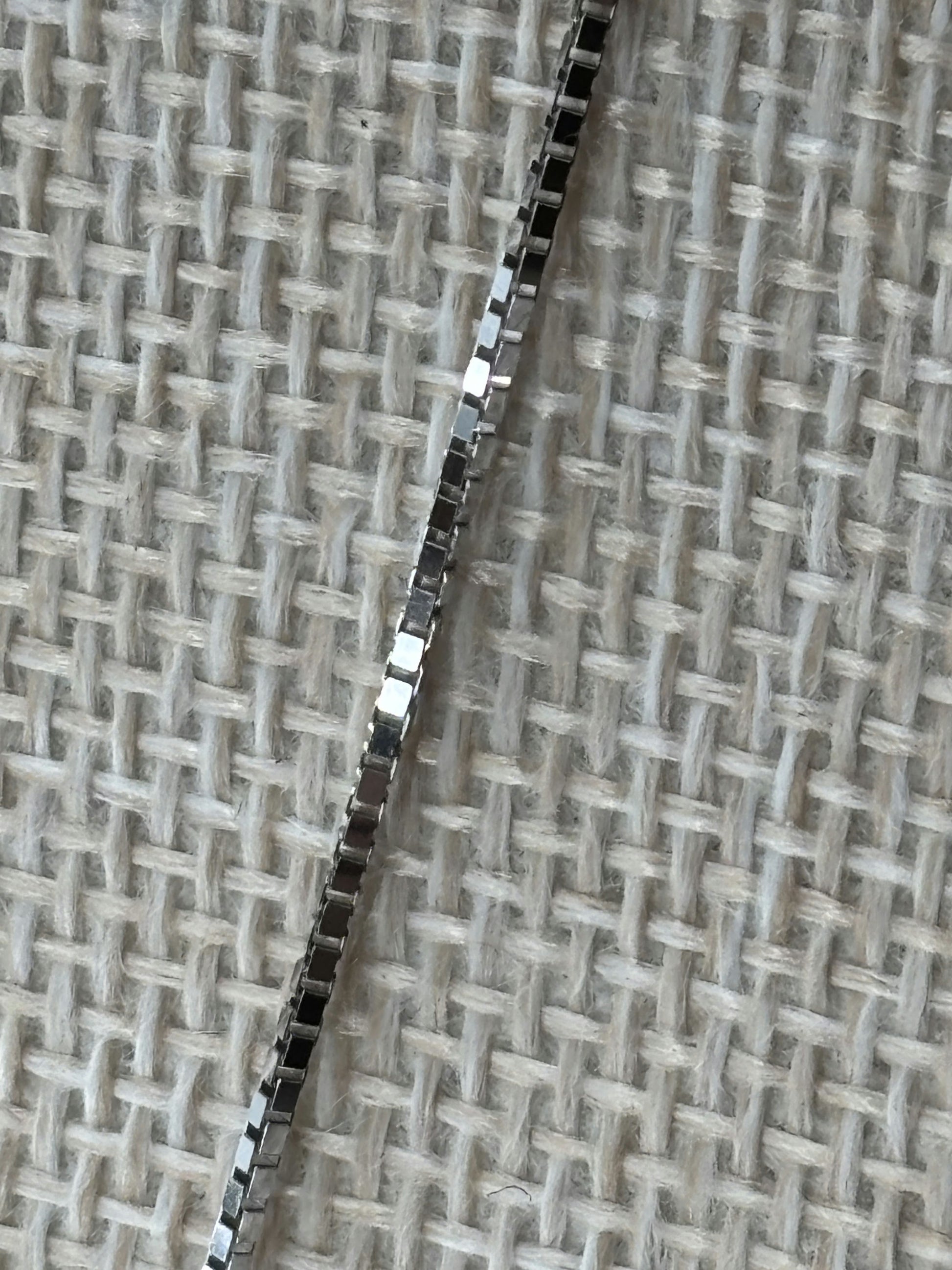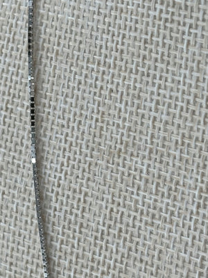 White gold lovers assemble! This is a stunning 18k white gold box chain measuring 19.5" long and .95mm wide. Total weight 3.7g.